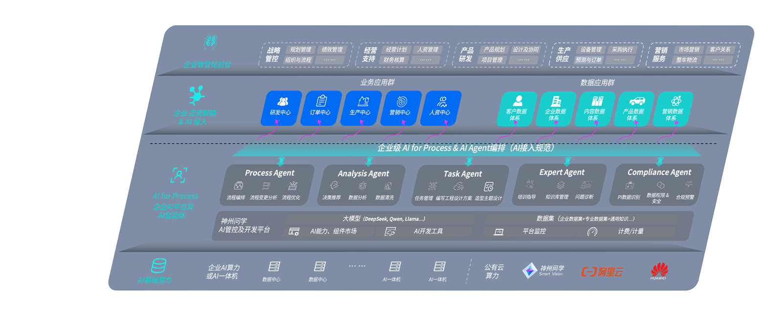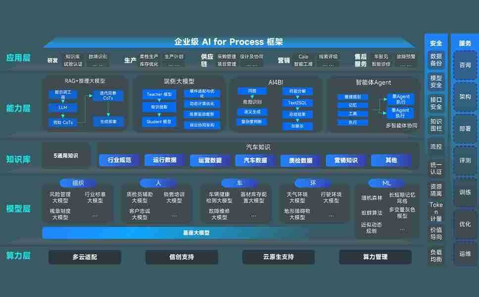 壹号娱乐问学智车解决方案是一套基于AI技术的汽车行业智能化系统,,覆盖从底层算力到顶层AI应用的全栈方案。。。方案由算力层、、模型层和应用层组成:算力层,,方案支持多种一体机配置,,具备云端灵活部署、、、多云适配以及动态优化计算资源的能力;模型层,,壹号娱乐问学平台版提供了企业级AI应用一站式构建与管理平台,,,,支持基于后训练强化技术的汽车企业专属模型的训练、、评测和运营;应用层,,,壹号娱乐问学DeepSeek版提供包括超级员工、、、智能招采、、、智能营销、、、智能客服、、AI for BI等一系列解决方案,,,可助力汽车行业实现数字化转型,,让管理更智能、、响应更敏捷。。