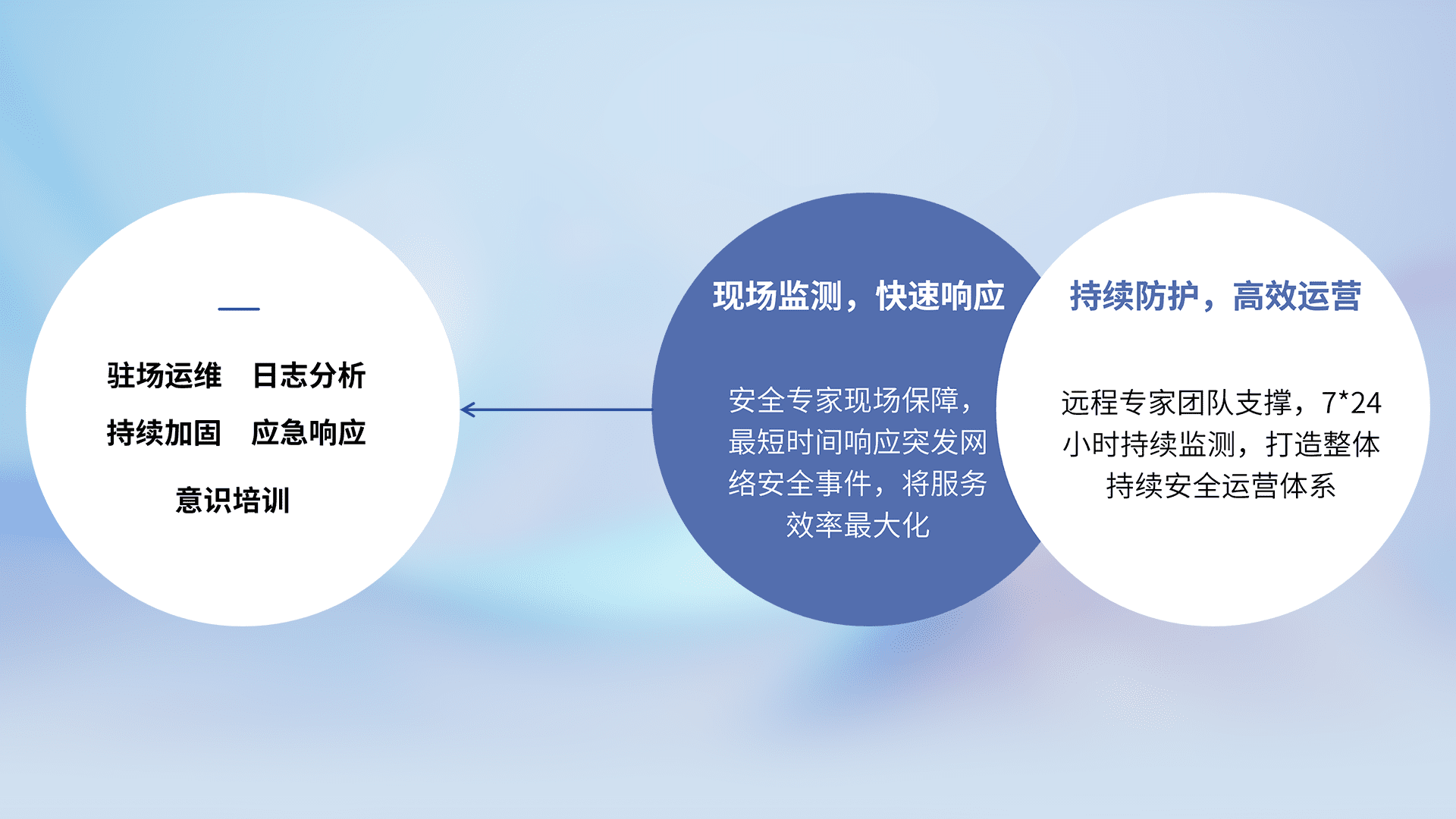 7X24小时持续监测安全事件,保持安全策略有效性,降低资产脆弱性风险,,,,精准拦截黑客攻击,,,减少被黑客利用的机会,,,,第一时间遏制,,降低损失。。